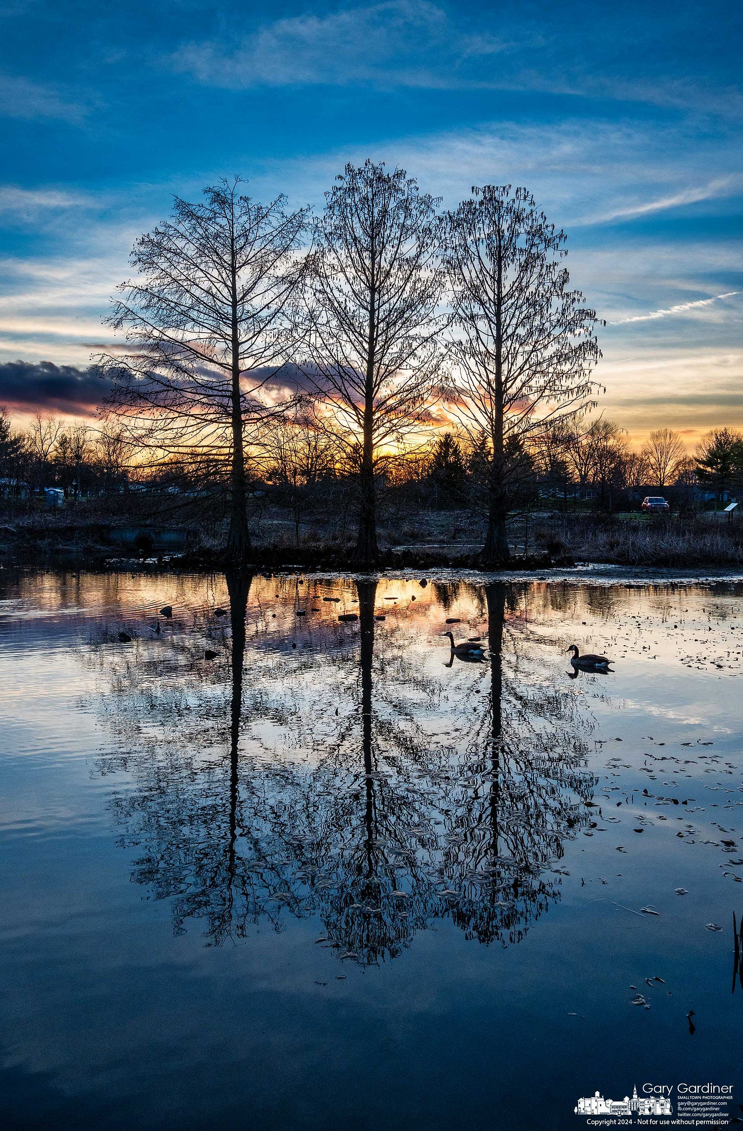 I struggled to try to decide today’s My Final Photo because I spent so much time explaining to these two geese how important it was that they move from the shoreline into a position in the pond that would make them good pattern-breaking objects that would help turn a two-dimensional setting into a three-dimensional moment. They almost got it right before the sun went down behind the trees. I chose a different photo just to irritate the geese.