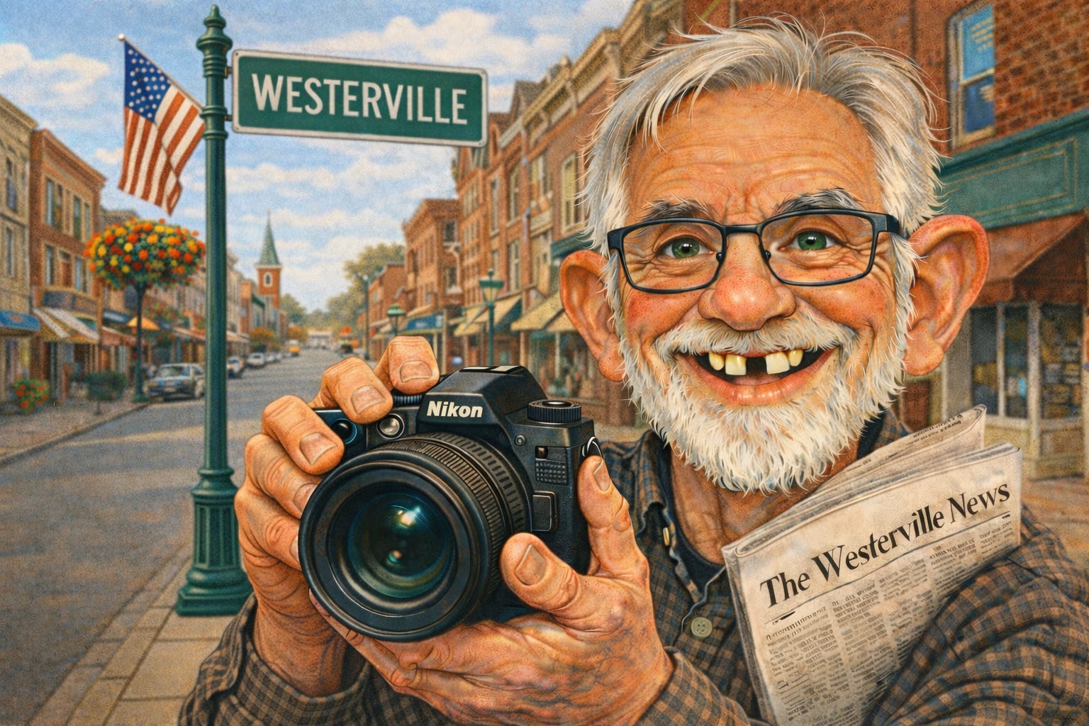 Note: The image above is AI-generated from a photo of me, Uptown Westerville, and my personal Alfred E. Neuman For President poster.