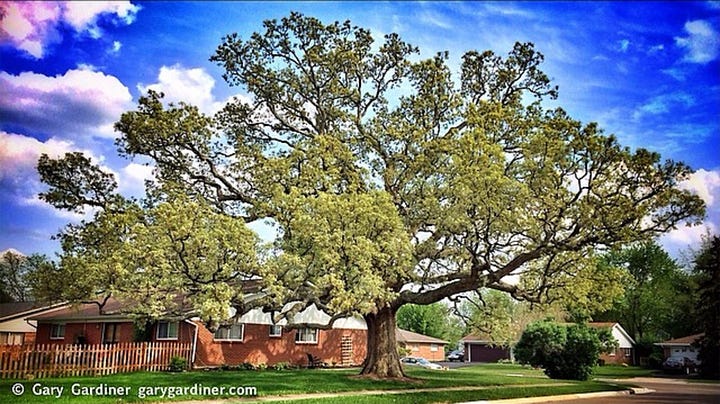 The oak tree at the corner of Brisbane and Barcelona in the Huber Village neighborhood is getting a new owner on Tuesday. They also get the accompanying house.